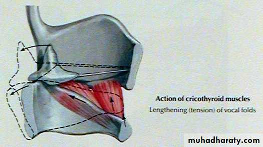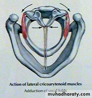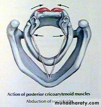 Abductors of the vocal cords: posterior cricoarytenoid.