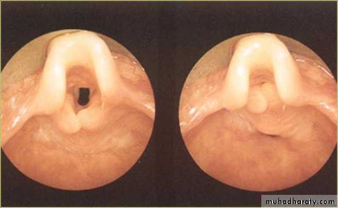 On examination: Indirect and fibroptic laryngoscopy reveals: