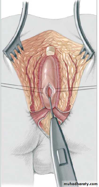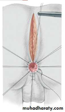 3-4 month later definitive surgery using posterior sagital anorectoplasty(P.S.A.R.P. pullthrogh) Or penna technique.