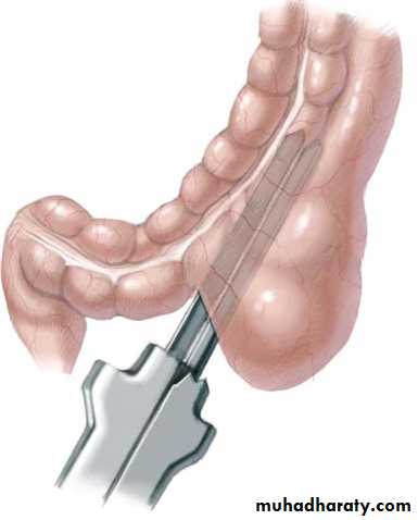a-linear inverting anastomosis with transection(for side to side anastomosis).