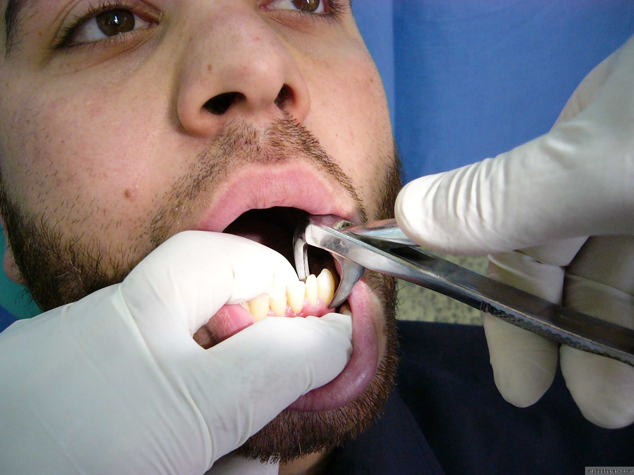 Jaw support by the non dominant hand is essential for all extractions.1- Support of the mandible during tooth extraction