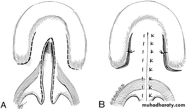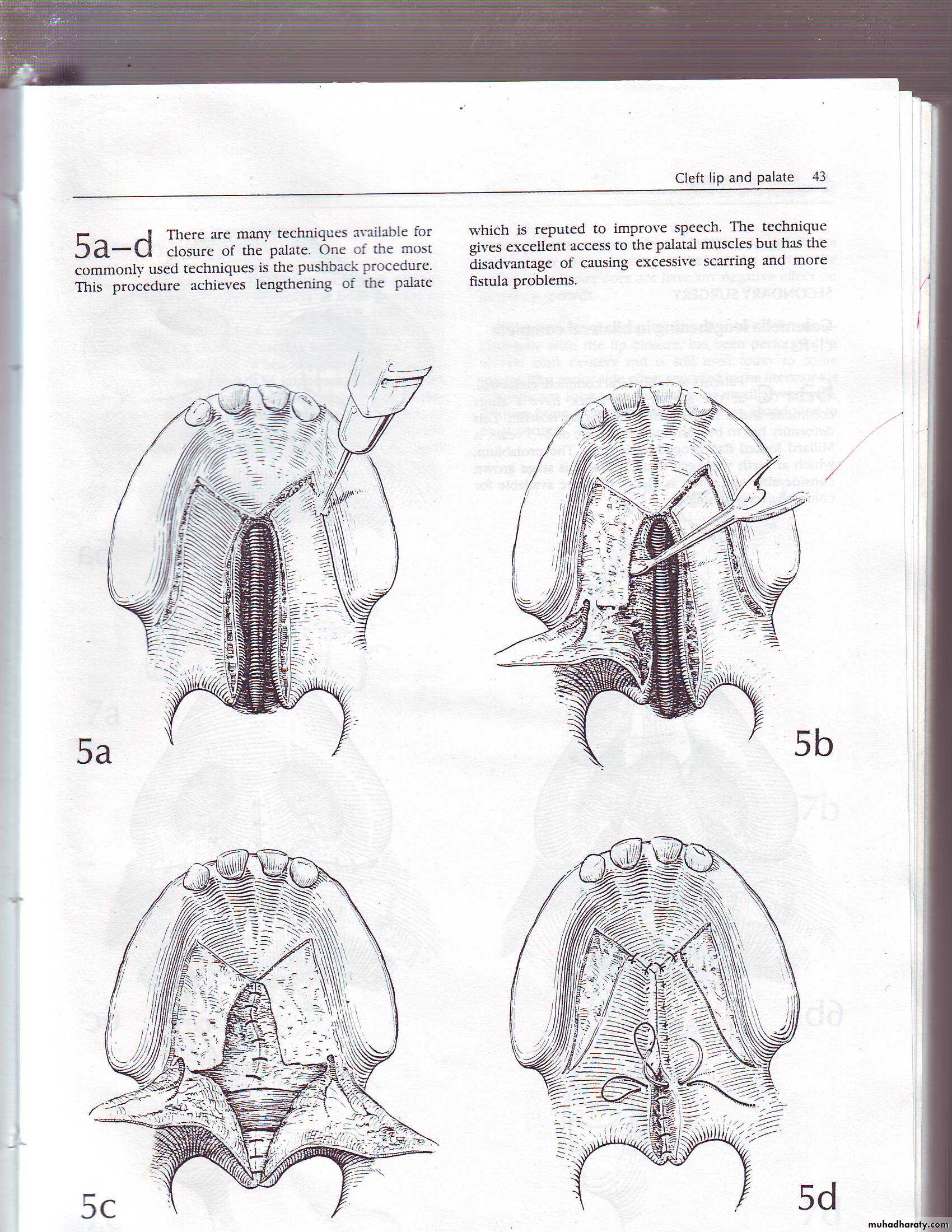 Palate : at 12-18 months, by Veau-Wardil, 4 flaps, Langenbek.