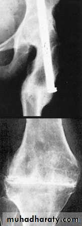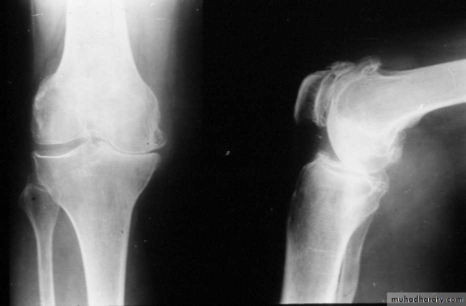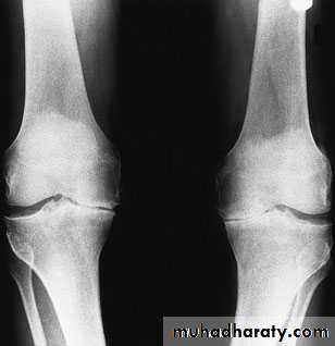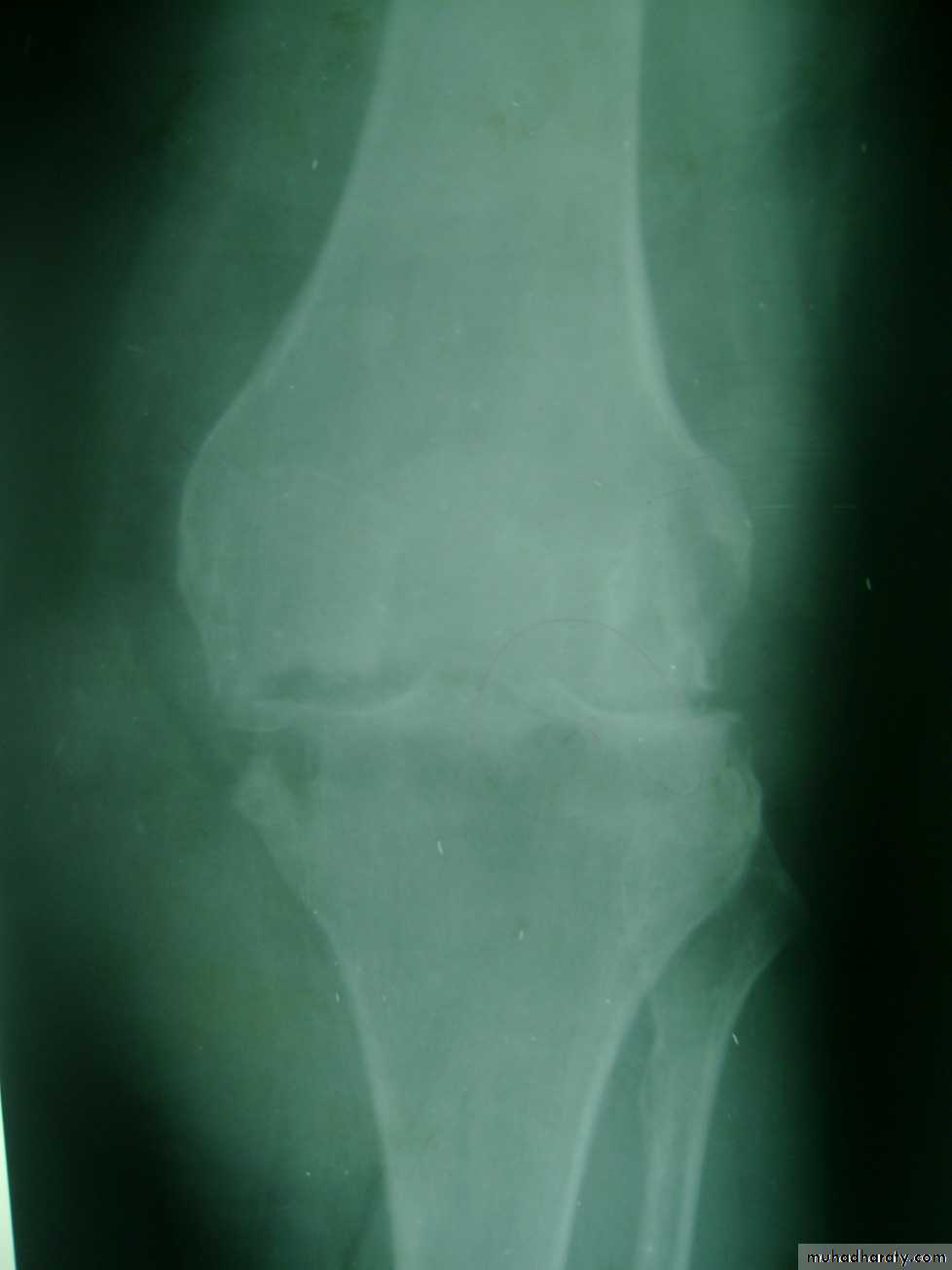 1- Asymmetric loss of cartilage ( narrowing of joint space).2-Sclerosis of subchondral bone, with subchondral cyst sometimes.