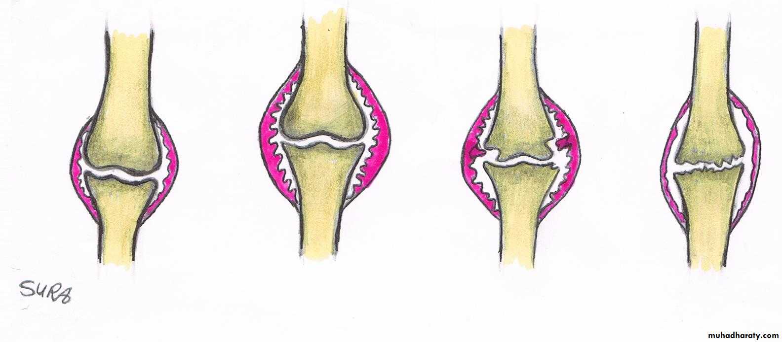 Stop the synovitis : the first step are rest and drugs ( NSAIDs , chloroquin, methotraxate, sulphasalazine, gold, penicillamine, steroids , and many new cytotoxic drugs and experimental drugs can be used).
