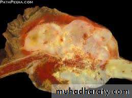 The lining membrane consists of flimsy fibrous tissue, often containing giant cells. In anactively growing cyst, there is osteoclastic resorption of the adjacent bone.