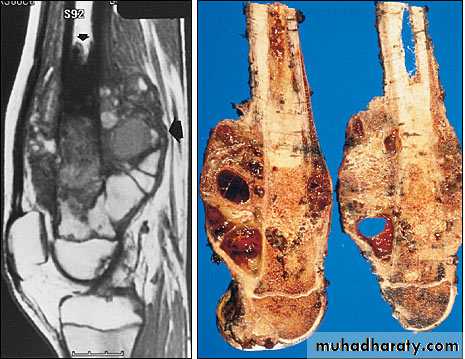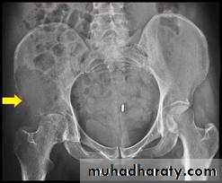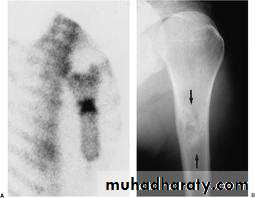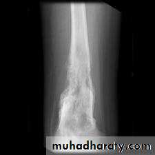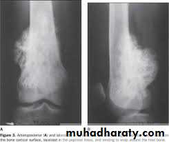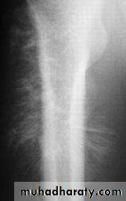 in the mid-diaphysis.New bone formation may appears as fusiform layers of bone around the lesion – the so-called ‘onion-peel’ effect.