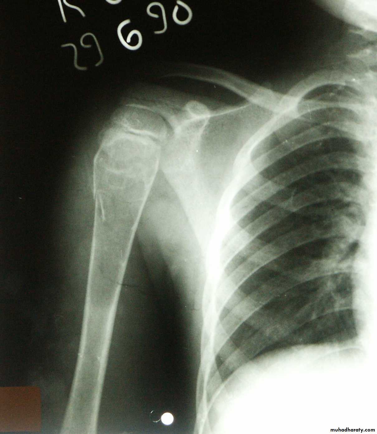 sometimes there is marked bone destruction, with or without a pathological fracture.