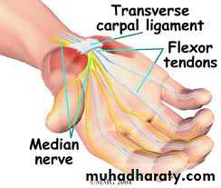 In the normal carpal tunnel there is barely room for all the tendons and the median nerve; consequently,