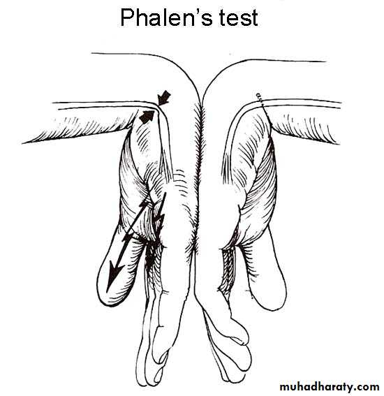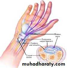 Pain and paraesthesia occur in the distribution of themedian nerve in the hand.