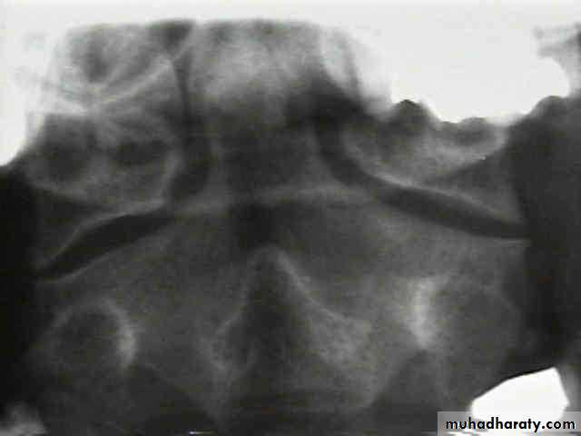 Anterio posterior X ray radiograph.lateral radiographs with the head in flexion and extension may revealinstability that is not shown in the routine lateral film.