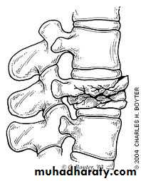 dislocation or fracture-disIocation.A flexion or flexion-rotation force may also cause massive displacement of an intervertebral disc, without bone injury