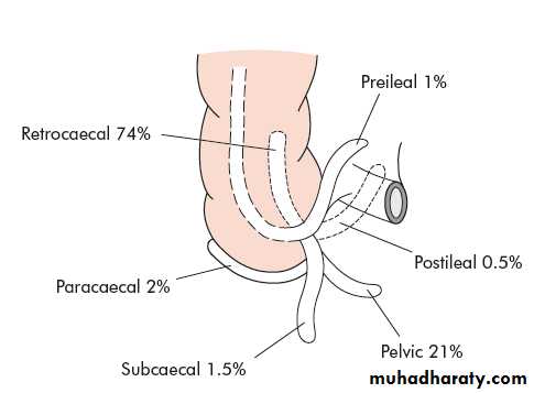 The inflamed appendix lies behind the terminalIleum(difficult to diagnose)