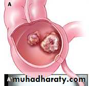 - tumour, particularly carcinoma of the caecum(middle age and elderly)