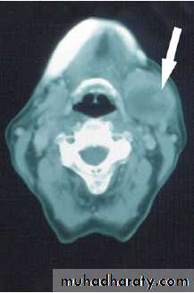 Slow growing, painless swellings below the ear, in front of the ear or in the upper aspect of the neck.