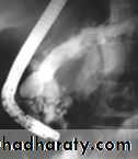 • The duct become distorted, either strictured or dilated containing plugs or stones.