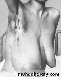 Occasionally, ‘toilet mastectomy’ or radiotherapy is required to control a fungating tumour.
