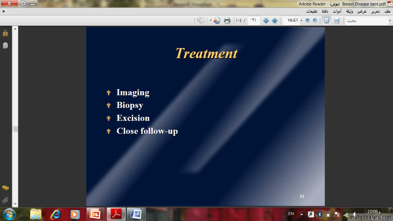 • Hormonal manipulation: is the first-line treatment because of its minimal side effects, hormonal therapy like Tamoxifen, It is particularly useful for bony metastases.