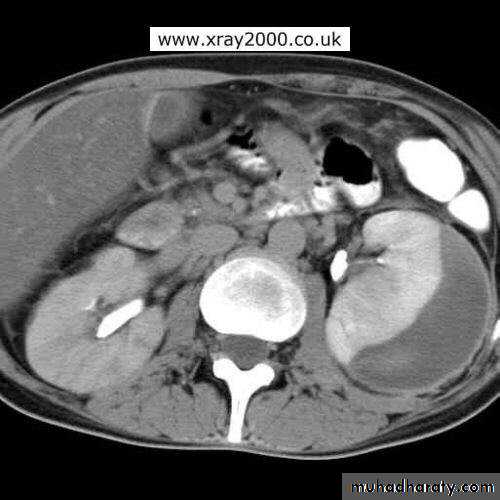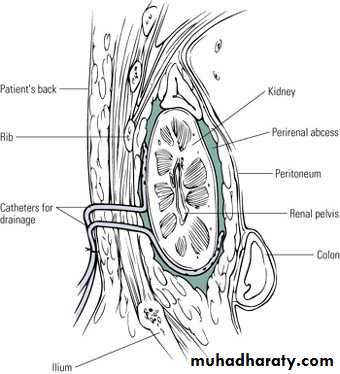 U/S: pus collection around the kidney with or without hydronephrosis.