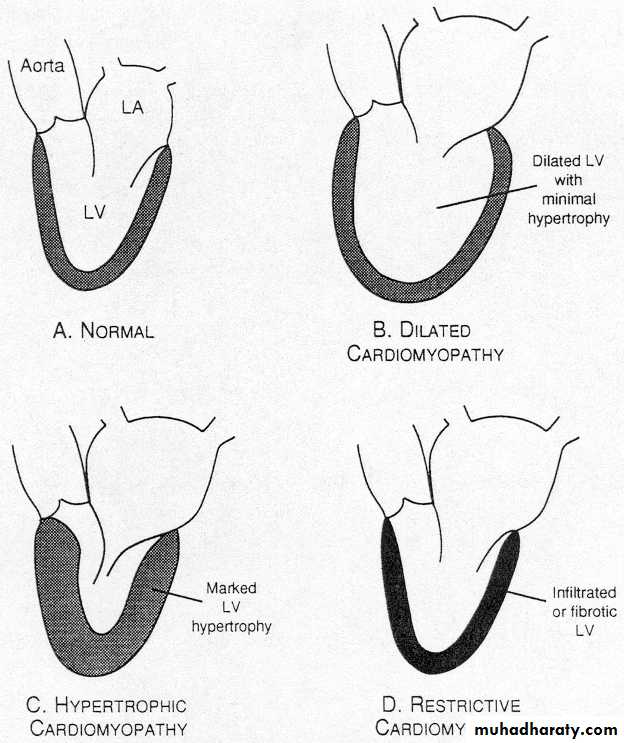 • although other forms of infiltration (e.g. glycogen storage diseases) and a familial form of restrictive cardiomyopathy do occur.
