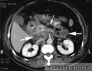 4. Pancreatic abscess: circumscribed, intra-abdominal collection of pus, often 4 weeks or more after onset