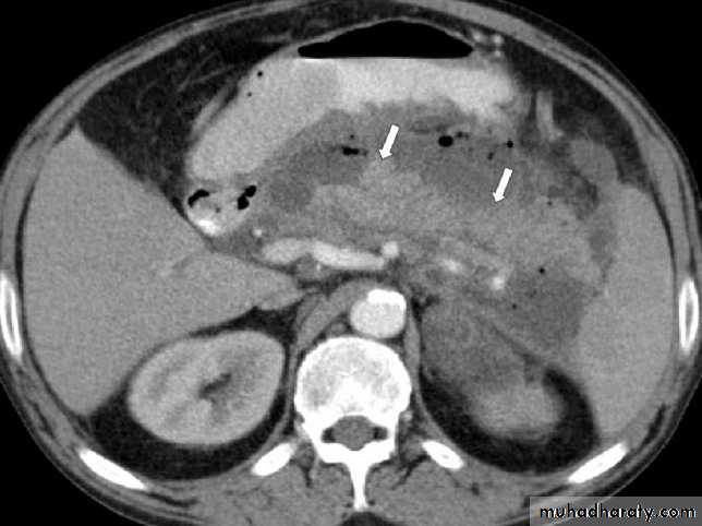 2.Pancreatic necrosis: diffuse or focal area(s) of non-viable pancreatic parenchyma,
