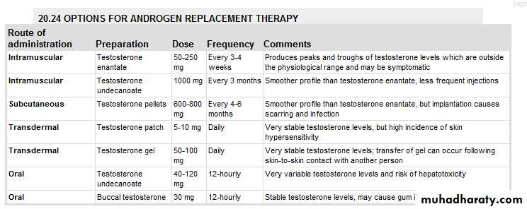 Management Testosterone replacement is indicated in hypogonadal men to prevent osteoporosis, and restore muscle power and libido.. First-pass hepatic metabolism of testosterone is highly efficient so bioavailability of ingested preparations is poor. Doses of systemic testosterone can be titrated against symptoms
