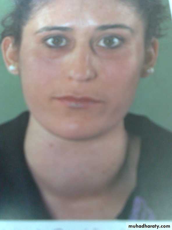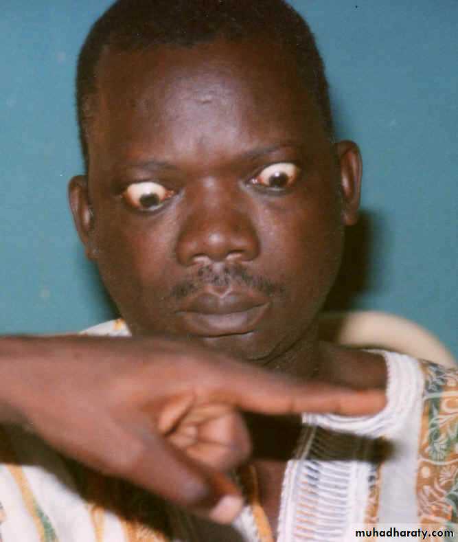 2- Moderate exophthalmoses:Excessive bulging of the eye ball because of deposition of fat.