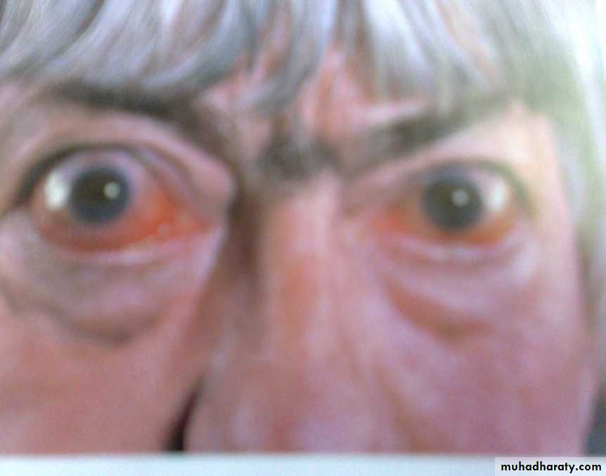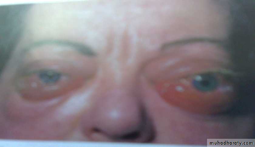 4- progressive exophthalmoses: appear after surgical treatment of thyrotoxicosis, result in chemosis, corneal ulceration and intraocular muscle paralyses.