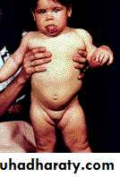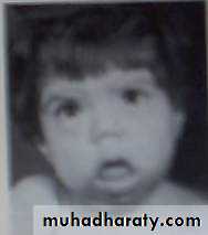• the patient fail to thrive with mental retardation, poor growth, large tongue, umbilical hernia, poor feeding and constipation.• Investigation: high level of TSH, low T3, T4.