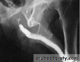 4.Urethrogram or cystourethrogram to assess the site,no. & extent of the stricture + to show some complications as bladder trabeculation,vesical stones & urethral fistula.