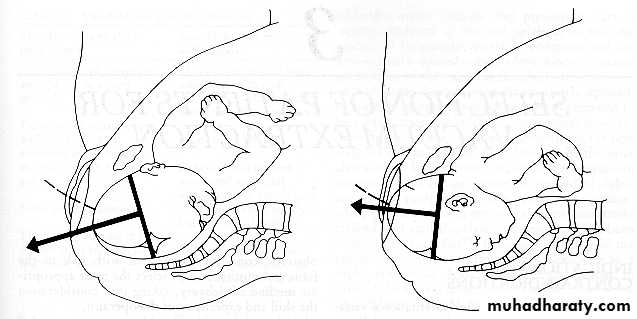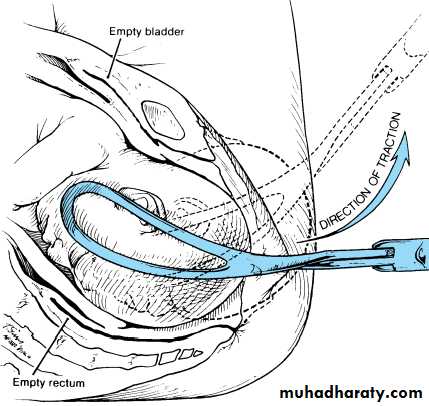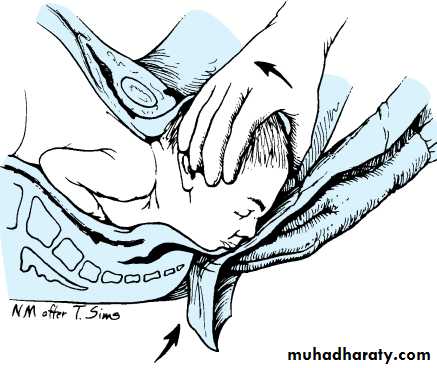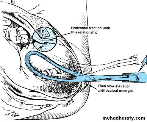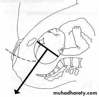 The axis of traction is then extended upwards to a 45 degree angle to the floor as the head emerges from the pelvis and crowns.