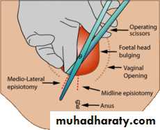 Intentional incision at perineum made to enlarge vulval outlet to ease birth process or to protect mother from uncontrolled perineal lacerations.Technique: