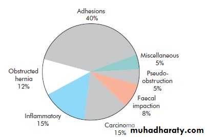 This is usually due to underlying carcinoma or occasionally diverticular disease, and presents in an acute or chronic form.The condition of pseudo-obstruction should always be considered and excluded by a limited contrast study or air computerised tomography (CT) scan to confirm organic obstruction.
