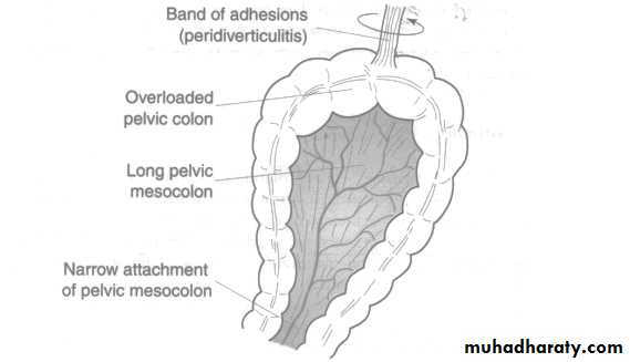 failure results in an early laparotomy, with untwisting of the loop and per-anal decompression, When the bowel is viable, fixation of the sigmoid colon to the posterior abdominal wall may be a safer manoeuvre in inexperienced hands.Paul—Mikulicz proceduredouble barrel colostomy.