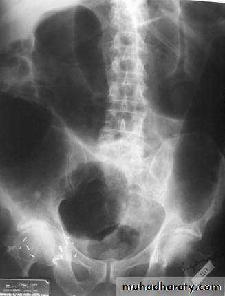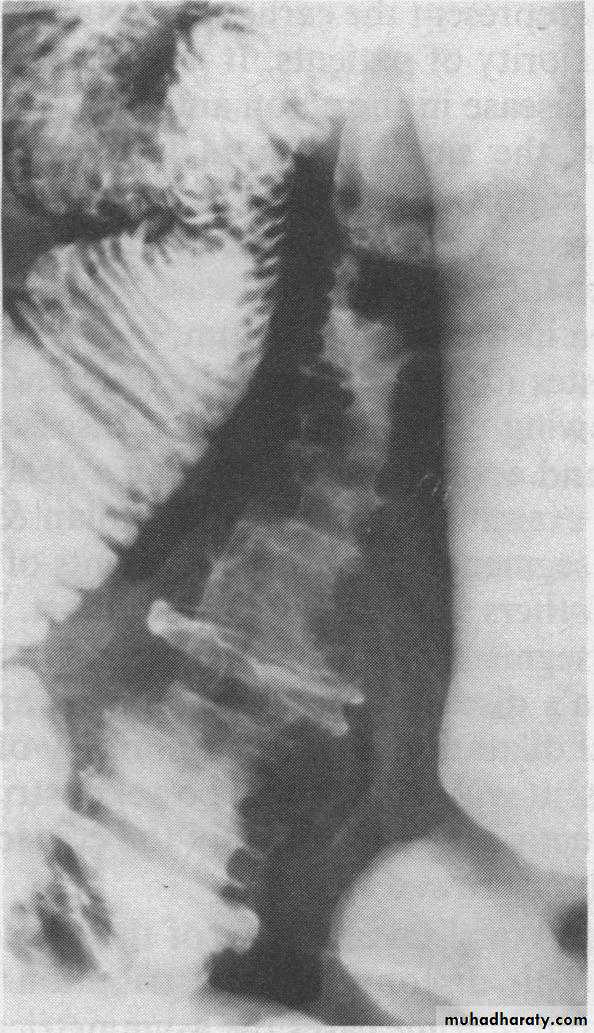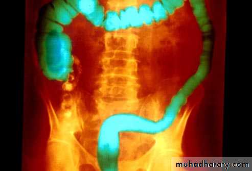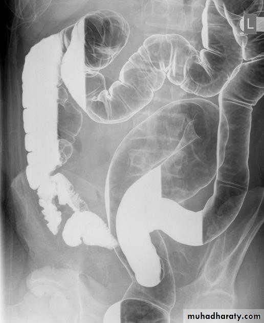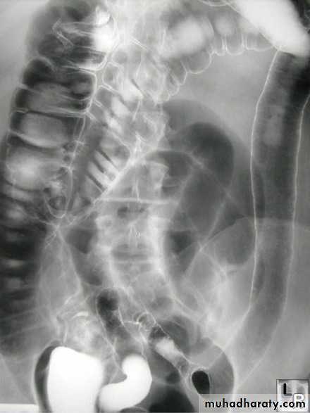 o Shortening of the colon-may be from spasm of longitudinal muscles or from irreversible fibrosis (lead-pipe colon)