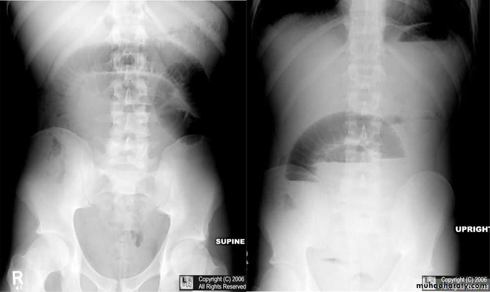 Plain x ray SBOdilated loops with air fluid level in erect position