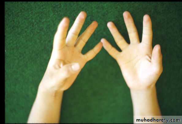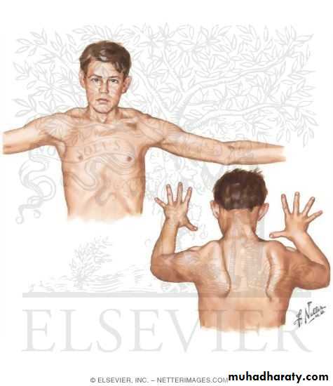 -Weakness of shoulder girdles which is usually brings the patient to medical attention.