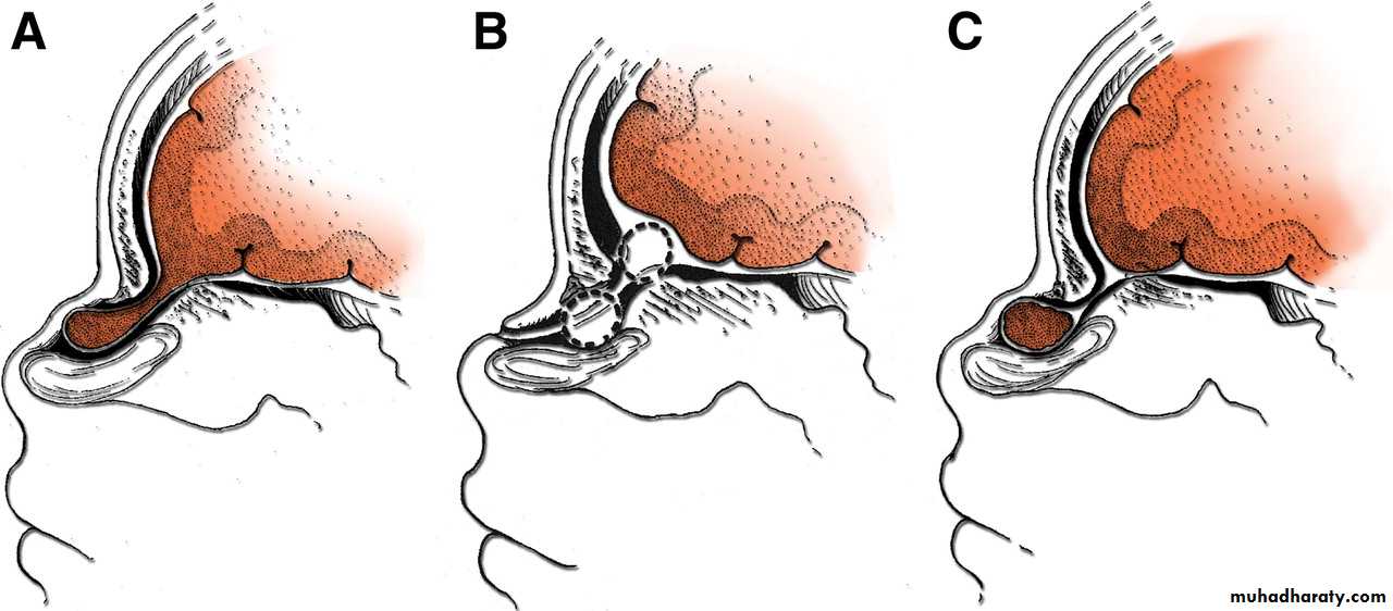 These are developmental herniation of cerebral tissue through a cranial defect.They occur with a frequency of approximately 1-4 in 1000 births.