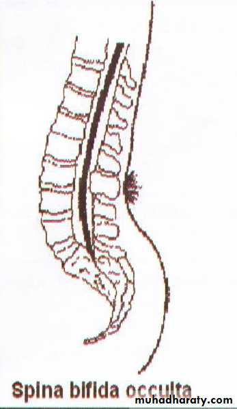 • Spina bifida Occulta:• The posterior vertebral arch has a defect within it, but there is no herniation of the neural tube.