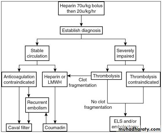The majority of patients who die of pulmonary embolism do so within 2 hours of the initial acute event, before the diagnosis can be firmly established, and before effective therapy can be instituted.