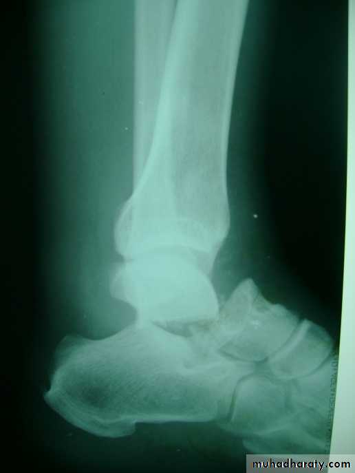 Rare, resulted from high energy trauma (fall from height or road traffic accident). The fractures might occur in head, neck, body, or lateral process. Might associated with dislocations of midtarsal, subtalar, ankle joints, or complete talar dislocation. There are pain, sever swelling, deformity and skin tenting which may lead to skin sloughing, and skin laceration sometimes.Imaging: X ray shows the type and severity of fractures and associated injuries , CT scan is of important value, MRI and radioactive isotope might be used.