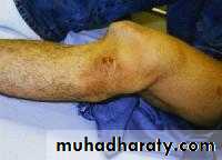 The knee can be dislocated only by considerable violence, as in a road accident. The cruciate ligaments and one or both lateral ligaments are torn. There is sever swelling , bruises and knee deformity. The circulation and sensation in foot must be examined to exclude popliteal vessels and nerve injuries..Knee dislocation