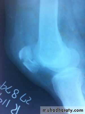 The knee collapses and patient fall on ground. Patella can be felt on outer side of knee or the patella springs back into position spontaneously. The X- ray shows dislocation of patella laterally and associated fractures if present.
