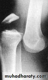 Tibial plateau fractures:Direct blow or fall from height may cause fracture of one tibial condyle or both. Fracture lateral condyle is the commonest named as bumper fracture caused by a force that abducts the tibia upon femur while the foot is fixed on ground. Patient usually is an adult, the knee joint is swollen, bruises, there is diffuse tenderness and doughy feel of haemarthrosis.ligaments injuries must be excluded.