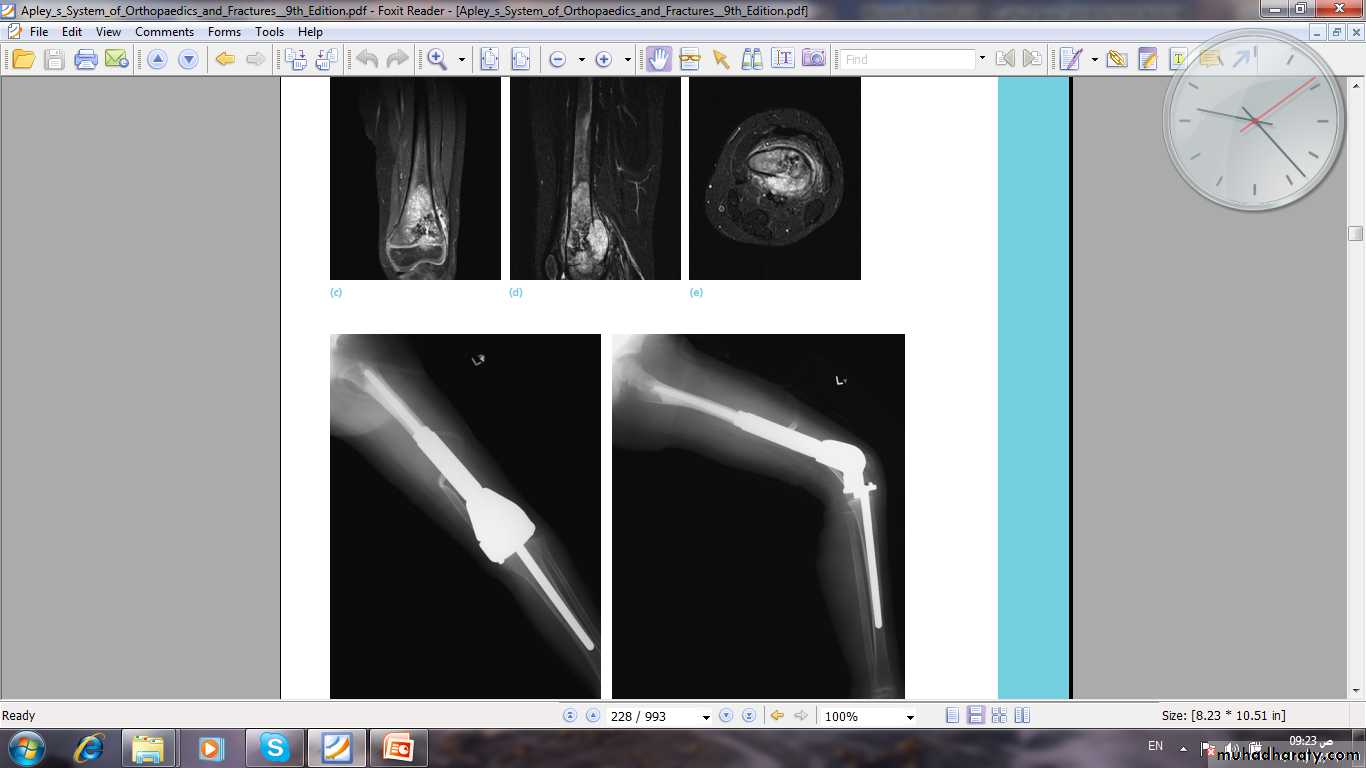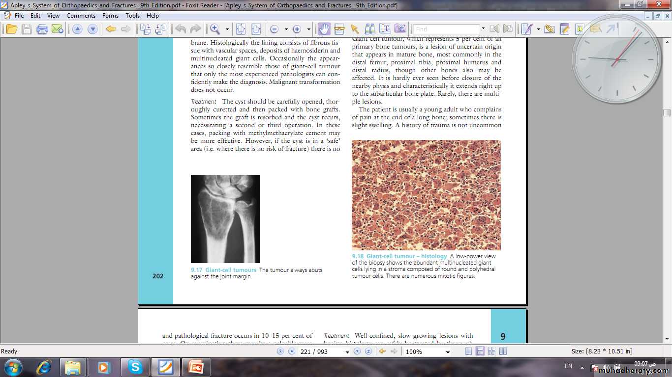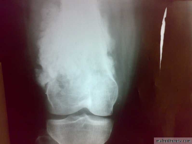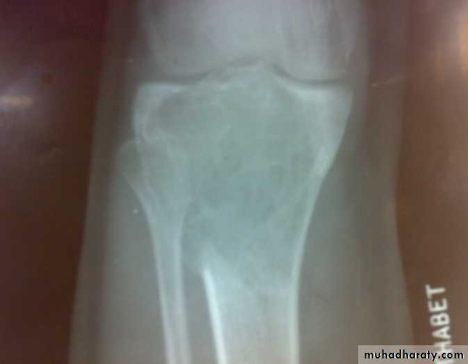 Patient presented by local pain and swelling or pathological fractures. Common site is the distal femur, proximal tibia, distal radius.