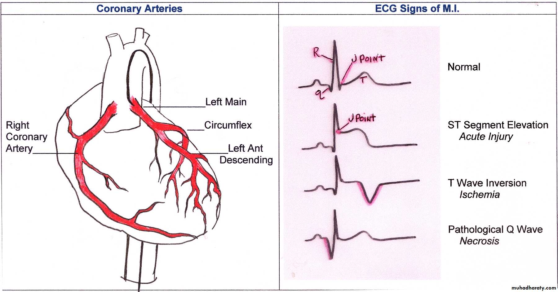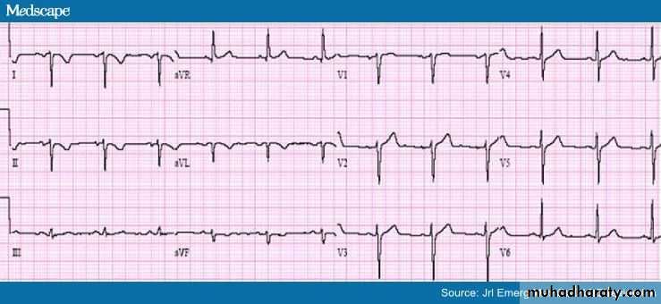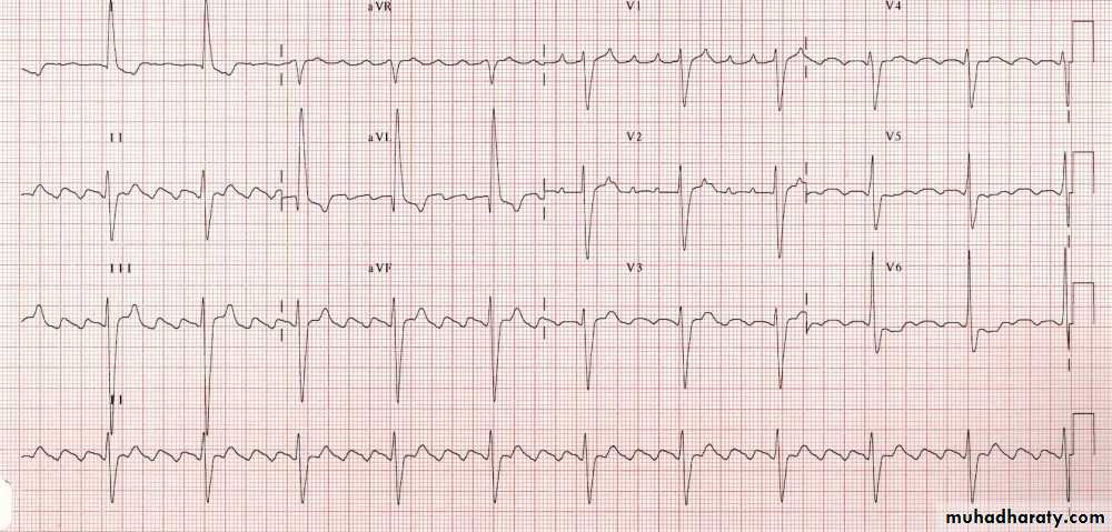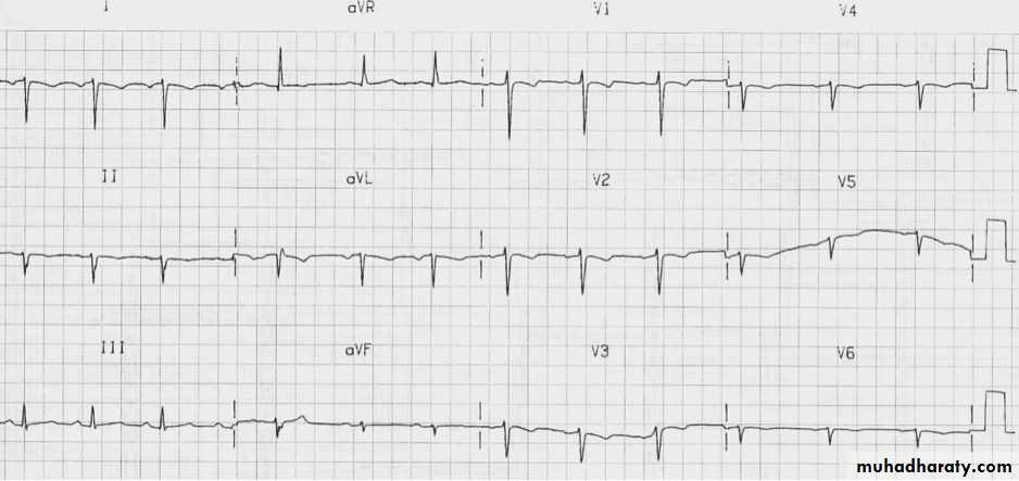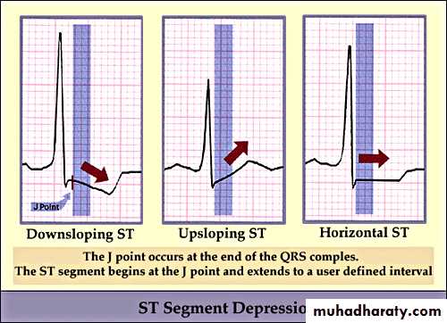 • Upward sloping depression of ST segment is not indicative of IHD• It is called J point depression or sagging ST seg