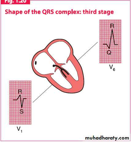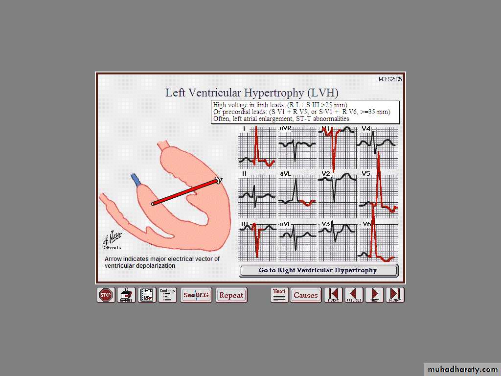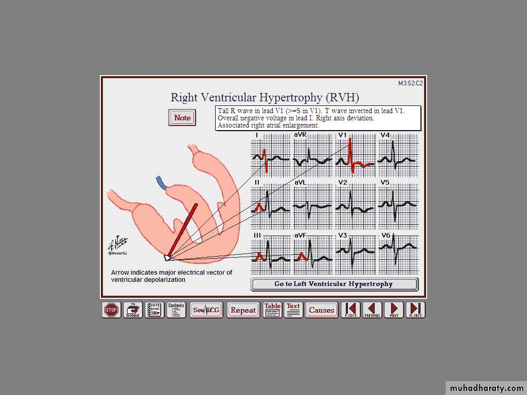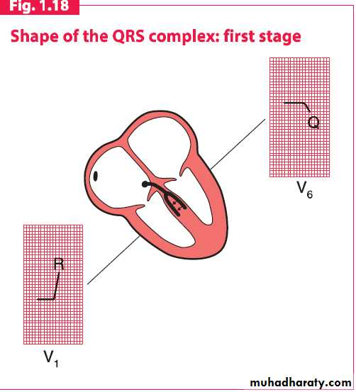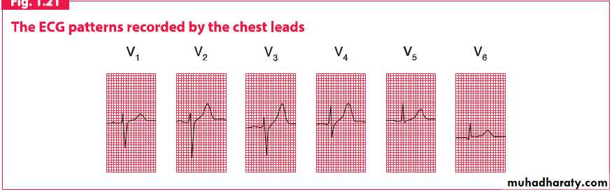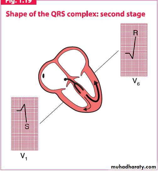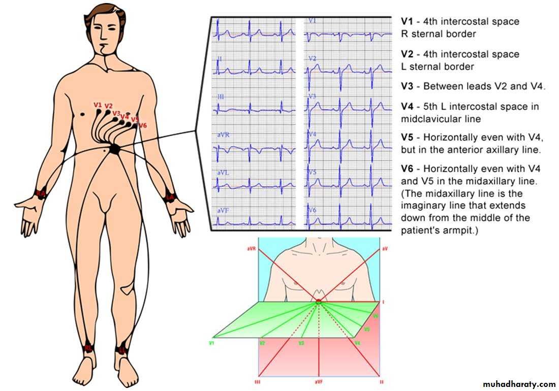 Note: the normal average direction for the heart’s electrical activity is from the upper right, in the right atrium, to the lower left.