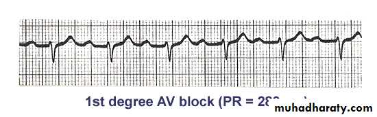 Etiology: Prolonged conduction delay in the AV node or Bundle of His.Rhythm