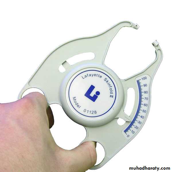 Subcutaneous fat under the skin of triceps, infrascapular area can be measured with skin fold calipers