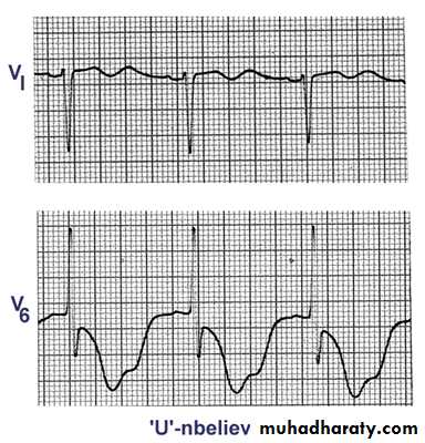 Represent after depolarization of ventricles.Normal u has same polarity of t, amplitude 1/3 of t